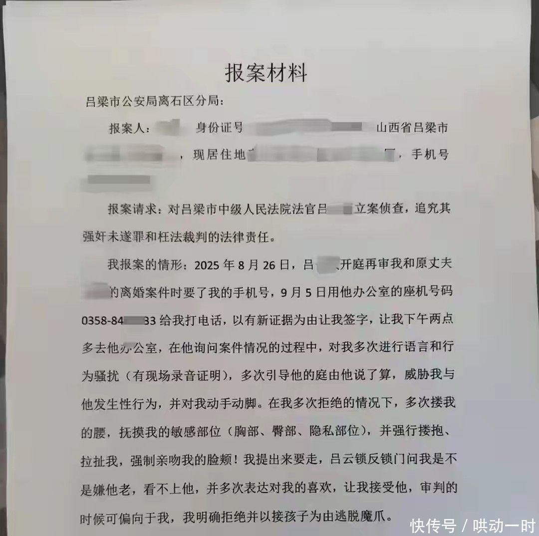 这不是某部热播剧中的虚构桥段,而是山西吕梁市中级人民法院一名身着法袍的审判人员,在其独立办公室内,当面向一位正在办理离婚诉讼的女性当事人亲口说出的话语。